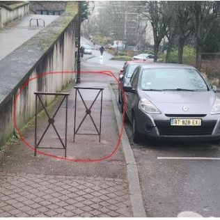 - Pour seule action, la mairie s’efforce d’empêcher les 2 roues de monter sur le trottoir par l’ajout de barrière (7 sur 350 mètres en 3 ans) au lieu de réfléchir à faire plus de places sur la voirie pour les 2 roues.