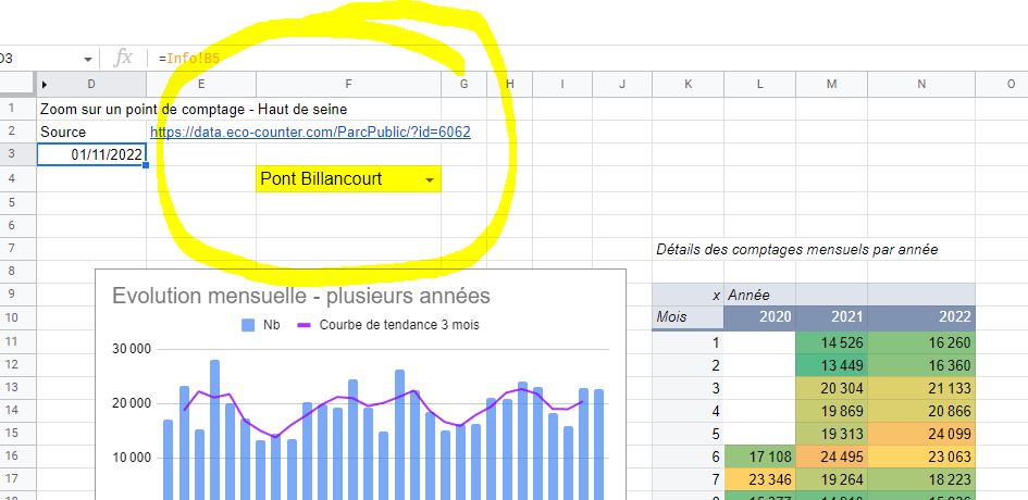 Voici l’évolution du trafic sur une vingtaine de compteurs des hauts de seine classé par ordre décroissant de trafic.